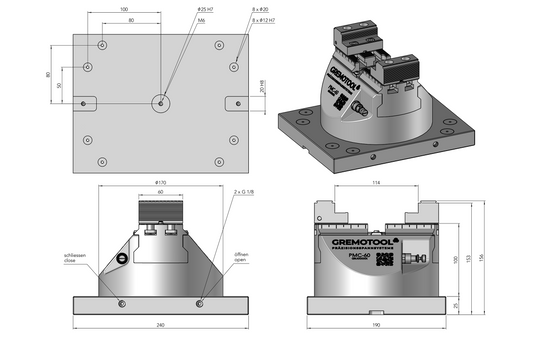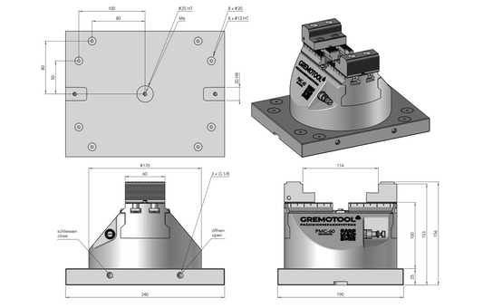 Die PMC/HMC-Baureihe wurde aufgrund der heutigen Anforderungen der Industrie in der Serienfertigung entworfen. Durch seine Vielfältigkeit spielt es keine Rolle mehr, ob durch den Benutzer selbst oder mittels Roboter das Werkstück in den Zentrumspanner eingelegt wird. Der prozesssicherste Zentrumspanner für die automatisierte 5-Achsbearbeitung ist die PMC/HMC-Baureihe.