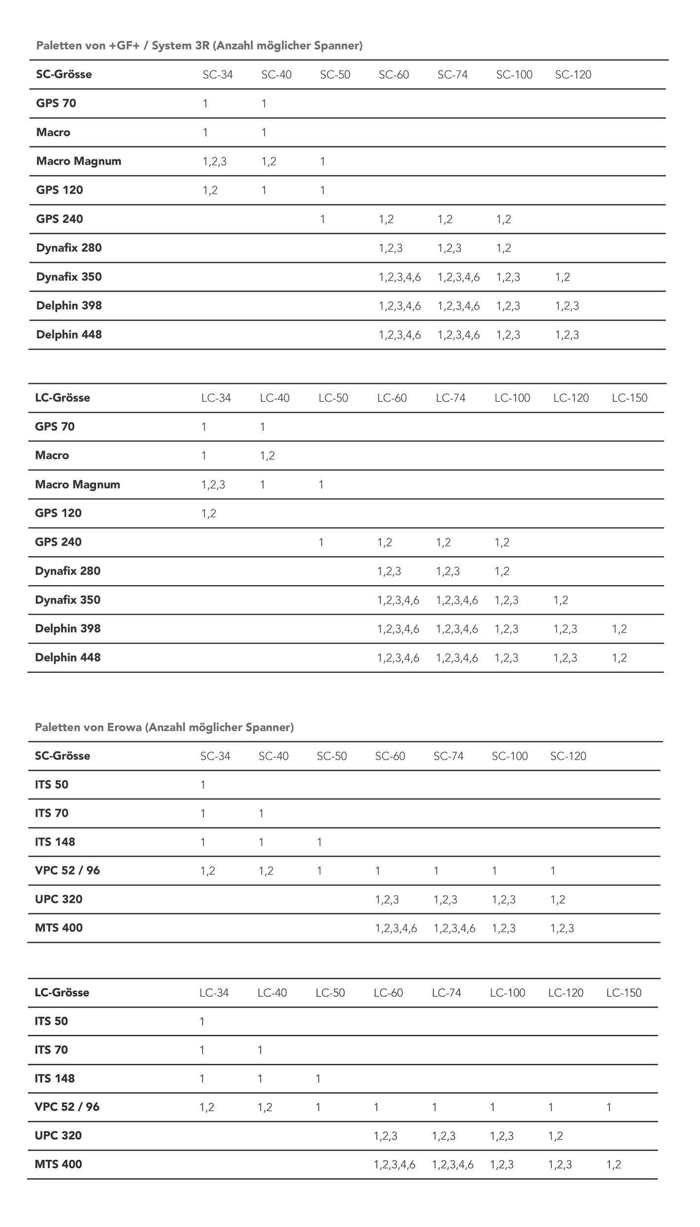 Die SC-/LC-Baureihen können direkt auf Nullpunktspannsysteme gewechselt werden. Dazu wird die jeweilige passende Aufnahme für das Nullpunktspannsystem in die Grundkörper der SC-bzw. LC-Baureihe integriert. Der Spannvorgang kann wahlweise von Hand oder durch einen geeigneten Roboter vorgenommen werden.